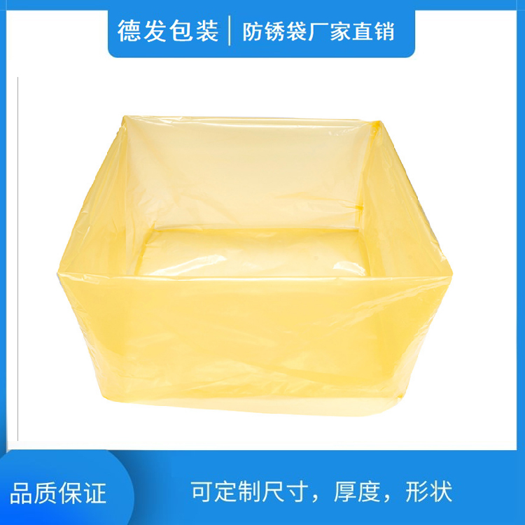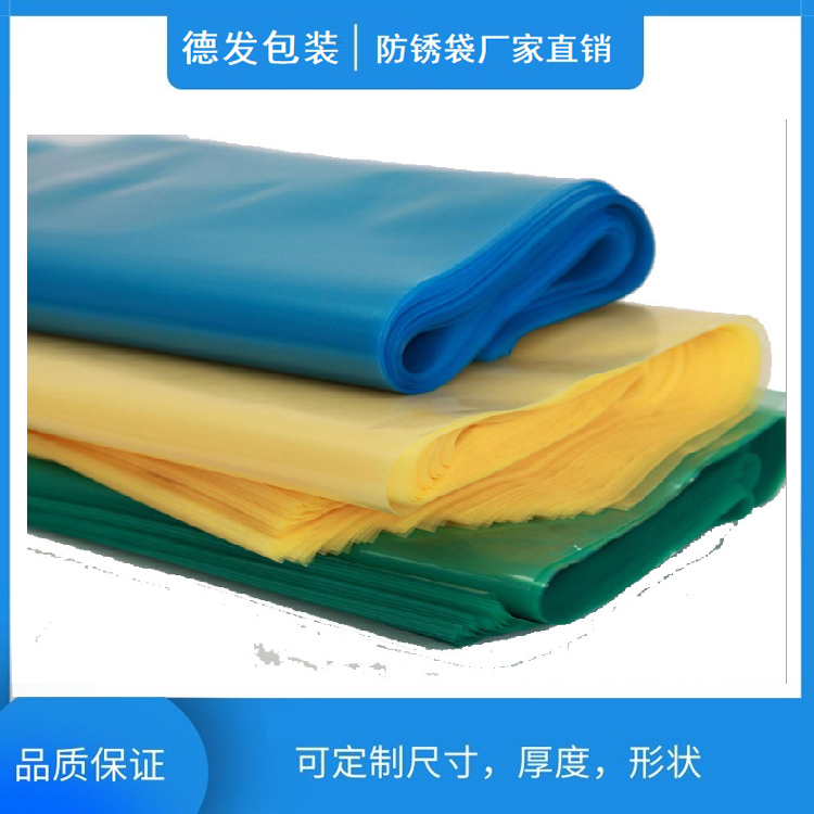 防锈袋拥有非常良好的可塑性,能克服传统的防锈产品保护不充分的弱点;拥有非常良好的透明性;有效的产品保护时间可达到1-3年。气相防锈塑料薄膜是基于高分子材料与vci气相防锈技术发展相结合的新一代创新高科技产品。使用膜将被防锈物品包装密封后,膜体内含有的vci开始升华挥发出防锈气体因子,扩散渗透至被防锈物品表面并吸附其上,形成单分子厚的致密保护膜层,隔绝诱发锈蚀的各种各样的因素与被防锈物品表面的接触,从而有很大效果预防锈蚀的产生。防锈期:2年以上(按要求规范使用)保管及储存:密封包装,存放于阴凉、干燥处,避免阳光直射,避免接触火源及腐蚀性物质。自出厂之日起保质期12个月。防锈袋的优点1,具备优秀能力的气相和接触防锈性能,防锈效果好,性能好价格低;2,干净清洁、无害无毒、环保安全。通过sgs认证,符合rohs指令要求;3,被防锈物品可立即使用,无需脱脂和清洗。省工省时,提高工效,节省本金;4,透明美观,被防锈物品动态可视,易于识别;5,适用性广泛。小至单个零件、大到整台设备均可使用。6,印刷性好,有助于提高被防锈物品的形象和档次。